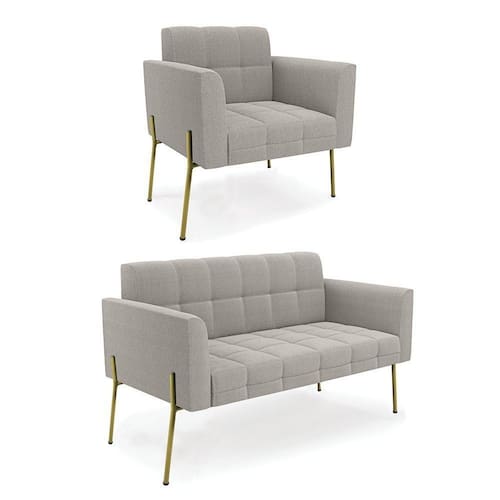 O Sofá Namoradeira e Poltrona Elisa é uma mobília que combina elegância, conforto e durabilidade. Ele tem um design retrô e sofisticado, com Pés Laterais de Ferro Dourado e revestimento em tecido Bouclê Cinza, que harmonizam com qualquer ambiente. Ele é ideal para sala de estar, recepções, escritórios, cozinhas ou qualquer outro espaço que você queira decorar com estilo e bom gosto. Ele tem uma estrutura em madeira de reflorestamento eucalipto, que garante a resistência e a sustentabilidade do produto. Ele suporta até 180 kg de peso, podendo ser utilizada por pessoas de diferentes biotipos. Ele tem um acabamento reforçado e espuma de qualidade D23, que oferece maciez e aconchego. Ele contém detalhes de costura no encosto e assento, resultando em um acabamento impecável, conferindo muito mais valor e elegância ao produto. O Sofá Namoradeira e Poltrona Elisa é um móvel de alta qualidade, beleza e funcionalidade. Ele é fácil de transportar, pois tem um peso leve e um tamanho compacto. O Sofá Namoradeira e Poltrona Elisa é um produto que vai fazer a diferença na sua decoração e no seu bem-estar. Ele vai trazer charme, conforto e durabilidade para o seu ambiente. Aproveite essa oferta e leve para casa um Sofá Namoradeira e Poltrona de qualidade por um preço incrível. Essa é a sua chance de ter um Sofá Namoradeira e Poltrona maravilhoso por um preço imperdível. Corra e garanta o seu antes que acabe o estoque!