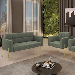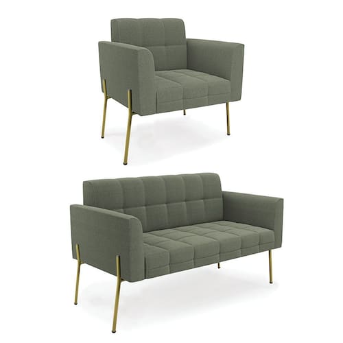 O Sofá Namoradeira e Poltrona Elisa é uma mobília que combina elegância, conforto e durabilidade. Ele tem um design retrô e sofisticado, com Pés Laterais de Ferro Dourado e revestimento em tecido Bouclê Menta, que harmonizam com qualquer ambiente. Ele é ideal para sala de estar, recepções, escritórios, cozinhas ou qualquer outro espaço que você queira decorar com estilo e bom gosto. Ele tem uma estrutura em madeira de reflorestamento eucalipto, que garante a resistência e a sustentabilidade do produto. Ele suporta até 180 kg de peso, podendo ser utilizada por pessoas de diferentes biotipos. Ele tem um acabamento reforçado e espuma de qualidade D23, que oferece maciez e aconchego. Ele contém detalhes de costura no encosto e assento, resultando em um acabamento impecável, conferindo muito mais valor e elegância ao produto. O Sofá Namoradeira e Poltrona Elisa é um móvel de alta qualidade, beleza e funcionalidade. Ele é fácil de transportar, pois tem um peso leve e um tamanho compacto. O Sofá Namoradeira e Poltrona Elisa é um produto que vai fazer a diferença na sua decoração e no seu bem-estar. Ele vai trazer charme, conforto e durabilidade para o seu ambiente. Aproveite essa oferta e leve para casa um Sofá Namoradeira e Poltrona de qualidade por um preço incrível. Essa é a sua chance de ter um Sofá Namoradeira e Poltrona maravilhoso por um preço imperdível. Corra e garanta o seu antes que acabe o estoque!