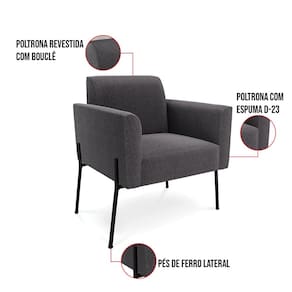 Namoradeira e Poltrona Pé Ferro Preto Marisa Bouclê D03 - D`Rossi - Grafite