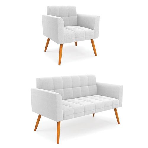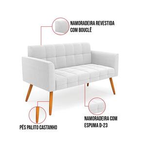 O Sofá Namoradeira e Poltrona Elisa é uma mobília que combina elegância, conforto e durabilidade. Ele tem um design retrô e sofisticado, com Pés Palito Castanho e revestimento em tecido Bouclê Off White, que harmonizam com qualquer ambiente. Ele é ideal para sala de estar, recepções, escritórios, cozinhas ou qualquer outro espaço que você queira decorar com estilo e bom gosto. Ele tem uma estrutura em madeira de reflorestamento eucalipto, que garante a resistência e a sustentabilidade do produto. Ele suporta até 180 kg de peso, podendo ser utilizada por pessoas de diferentes biotipos. Ele tem um acabamento reforçado e espuma de qualidade D23, que oferece maciez e aconchego. Ele contém detalhes de costura no encosto e assento, resultando em um acabamento impecável, conferindo muito mais valor e elegância ao produto. O Sofá Namoradeira e Poltrona Elisa é um móvel de alta qualidade, beleza e funcionalidade. Ele é fácil de transportar, pois tem um peso leve e um tamanho compacto. O Sofá Namoradeira e Poltrona Elisa é um produto que vai fazer a diferença na sua decoração e no seu bem-estar. Ele vai trazer charme, conforto e durabilidade para o seu ambiente. Aproveite essa oferta e leve para casa um Sofá Namoradeira e Poltrona de qualidade por um preço incrível. Essa é a sua chance de ter um Sofá Namoradeira e Poltrona maravilhoso por um preço imperdível. Corra e garanta o seu antes que acabe o estoque!