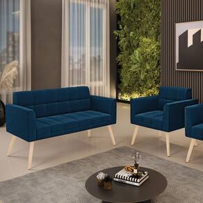Namoradeira e Poltrona Pé Palito Natural Elisa Bouclê D03 - D`Rossi - Azul