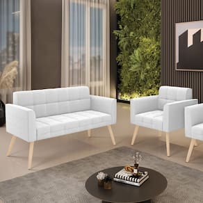 O Sofá Namoradeira e Poltrona Elisa é uma mobília que combina elegância, conforto e durabilidade. Ele tem um design retrô e sofisticado, com Pés Palito Natural e revestimento em tecido Bouclê Off White, que harmonizam com qualquer ambiente. Ele é ideal para sala de estar, recepções, escritórios, cozinhas ou qualquer outro espaço que você queira decorar com estilo e bom gosto. Ele tem uma estrutura em madeira de reflorestamento eucalipto, que garante a resistência e a sustentabilidade do produto. Ele suporta até 180 kg de peso, podendo ser utilizada por pessoas de diferentes biotipos. Ele tem um acabamento reforçado e espuma de qualidade D23, que oferece maciez e aconchego. Ele contém detalhes de costura no encosto e assento, resultando em um acabamento impecável, conferindo muito mais valor e elegância ao produto. O Sofá Namoradeira e Poltrona Elisa é um móvel de alta qualidade, beleza e funcionalidade. Ele é fácil de transportar, pois tem um peso leve e um tamanho compacto. O Sofá Namoradeira e Poltrona Elisa é um produto que vai fazer a diferença na sua decoração e no seu bem-estar. Ele vai trazer charme, conforto e durabilidade para o seu ambiente. Aproveite essa oferta e leve para casa um Sofá Namoradeira e Poltrona de qualidade por um preço incrível. Essa é a sua chance de ter um Sofá Namoradeira e Poltrona maravilhoso por um preço imperdível. Corra e garanta o seu antes que acabe o estoque!