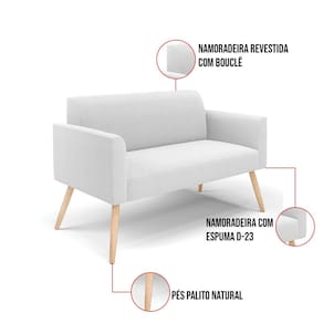 O Sofá Namoradeira e Poltrona Marisa é a escolha perfeita para quem deseja unir conforto e comodidade em um estilo elegante. Com um design único, ele possui Pés Palito Natural que harmoniza com o seu belíssimo tom, criando uma combinação elegante de conforto e estilo. Ele é perfeito para quem busca móveis que não só sejam bonitos, mas que também proporcionem bem-estar. Ideal para compor salas de estar, recepções, bibliotecas, salas de leitura, espaços de design e até áreas comerciais, essa peça versátil é pensada para ambientes que excluam beleza e aconchego. Sua estrutura, em madeira de reflorestamento de eucalipto, oferece resistência e sustentabilidade, suportando até 180 kg, garantindo segurança para usuários de diferentes biotipos. O conforto é outro destaque, com estofado em espuma prorelax D-23, que proporciona suporte e maciez ideais. Revestido em Bouclê, um tecido maleável e sofisticado, Sofá Namoradeira e Poltrona Marisa segue a tendência do momento com um toque suave e quente, remetendo à textura natural da lã. Leve e fácil de transportar, o Sofá Namoradeira e Poltrona é um item que agrega charme e durabilidade ao seu espaço. Não perca a oportunidade de adquirir essa peça exclusiva que fará toda a diferença na sua decoração e no seu bem-estar. Aproveite agora!