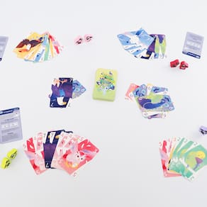 Em Nanatoridori, os jogadores competem para jogar todas as cartas da mão o mais rápido possível. Quanto mais cartas jogadas juntas, mais rápido você alcança o objetivo de jogar sua mão toda. Entretanto, para jogar cartas juntas, elas devem ter o mesmo valor numérico e estarem umas adjacentes às outras em sua mão. Pássaros de todo o mundo migraram para o Reino das Aves para o renomado Concurso de Beleza dos Pavões. Depois de uma noite de festas, as coisas se acalmaram e está na hora de todo mundo voltarpara seus ninhos. Entretanto, durante a festa, os convidados ficaram muito animados e acabaram se misturando, e agora não conseguem encontrar seus irmãos pássaros. Como Guias de Gala, sua função é reunir os animadosfoliões emplumados do mesmo tipo, de forma que eles possam voltar juntos para casa. Já está tarde, e os convidados estão cansados, então procure não demorar muito e ser o último guia a mostrar o caminho, ou você poderá acabar com um ovo na cara! Organizar pássaros fofos é muito divertido, mas é melhor colocá-los todos de uma vez em Nanatoridori. 2-6 Jogadores | 20 min. | Idade: 14+ Conteúdo
