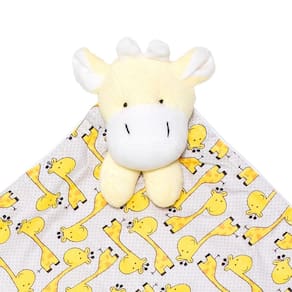 Naninha Malha e Tricoline com Prendedor de Chupeta Girafa Amarelo e Cinza