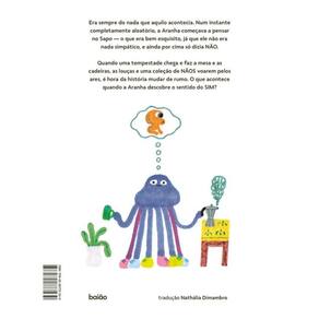 Era sempre do nada que aquilo acontecia. Num instante completamente aleatório, a Aranha começava a pensar no Sapo - o que era bem esquisito, já que ele não era nada simpático, e ainda por cima só dizia NÃO. Quando uma tempestade chega e faz a mesa e as cadeiras, as louças e uma coleção de NÃOS voarem pelos ares, é hora da história mudar de rumo. O que acontece quando a Aranha descobre o sentido do SIM? Marca: BAIAO EDITORA