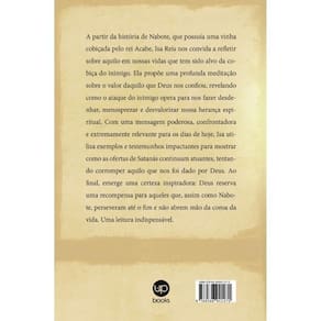 A partir da história de Nabote, que possuía uma vinha cobiçada pelo rei Acabe, Isa Reis nos convida a refletir sobre aquilo em nossas vidas que tem sido alvo da cobiça do inimigo. Ela propõe uma profunda meditação sobre o valor daquilo que Deus nos confiou, revelando como o ataque do inimigo opera para nos fazer desdenhar, menosprezar e desvalorizar nossa herança espiritual. Com uma mensagem poderosa, confrontadora e extremamente relevante para os dias de hoje, Isa utiliza exemplos e testemunhos impactantes para mostrar como as ofertas de Satanás continuam atuantes, tentando corromper aquilo que nos foi dado por Deus. Ao final, emerge uma certeza inspiradora: Deus reserva uma recompensa para aqueles que, assim como Nabote, perseveram até o fim e não abrem mão da coroa da vida. Uma leitura indispensável.
