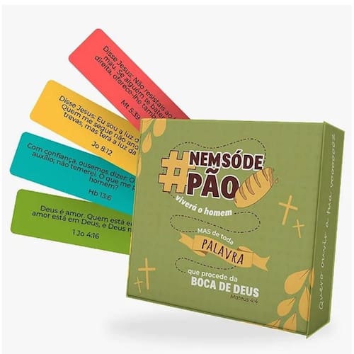 Nem Só de Pão é uma ferramenta poderosa para enfrentar os desafios diários em um mundo sobrecarregado. São 250 versículos bíblicos selecionados para ajudar a fortalecer e nutrir a alma de sua família. “Nem só de pão viverá o homem, mas de toda palavra que procede da boca de Deus” (Mateus 4:4). Comece hoje a alimentar sua família com a palavra de Deus em todas as refeições, nutra seus filhos, sobrinhos, netos, afilhados e veja o agir de Deus na vida deles. “FAMÍLIAS EMOCIONALMENTE E ESPIRITUALMENTE SAUDÁVEIS”