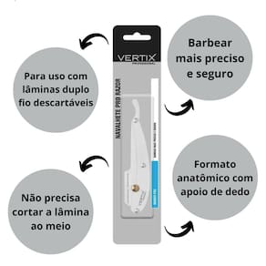 Para uso com lâminas duplo fio descartáveis (que não acompanham o produto). Não precisa cortar a lâmina ao meio. Para carregar ou substituir a lâmina, retire o parafuso para liberar o suporte da haste e ter acesso ao local da lâmina. Para fechar, faça o processo inverso.