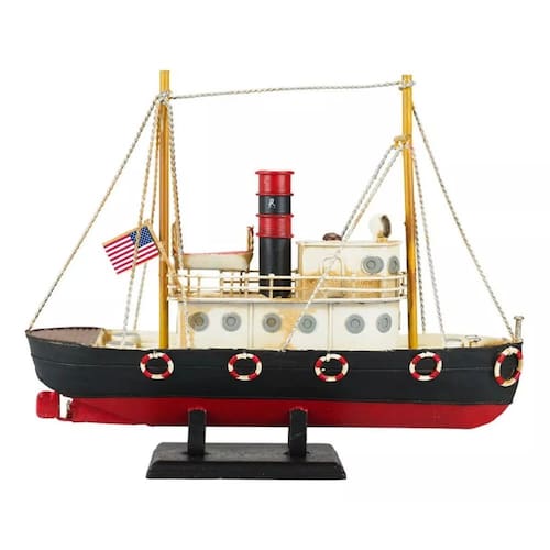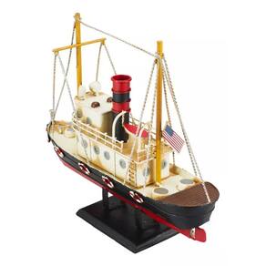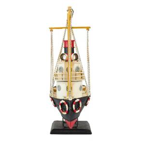 Enfeite decorativo em forma de navio com 26 x 31 x 8,5 cm de dimensão, detalhes e cores muito realista. Material: metal; Atenção: este produto tem apenas função decorativa, não é um brinquedo e nem um navio de verdade!