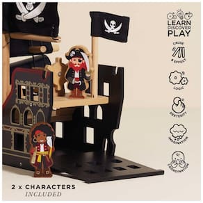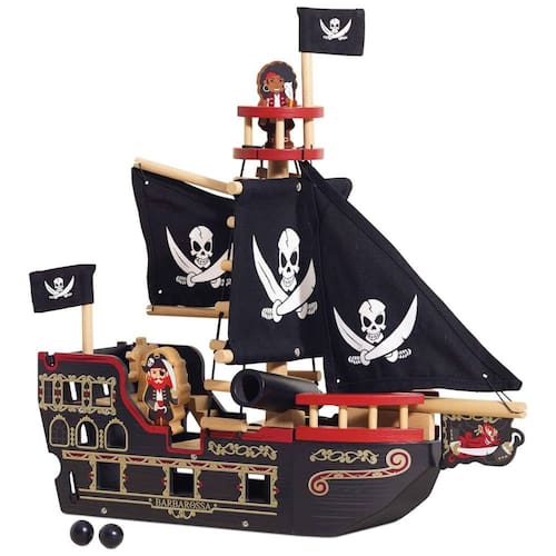 Navegue pelos sete mares com o navio pirata Barbarossa em uma pequena van de brinquedo. Este clássico navio pirata de madeira é pintado de preto e possui um motivo de caveira e espadas cruzadas nas velas de tecido. O navio inclui um ninho de corvos, uma passarela, cordame, um canhão de disparo com mola e balas de canhão, uma âncora de corda, um alçapão de convés, um leme, uma figura de proa Barbarossa e uma popa de abertura traseira para acesso. Este brinquedo é perfeitamente dimensionado para personagens Budkins e quaisquer outras figuras com cerca de 10 cm de altura. Figuras vendidas separadamente. Os brinquedos Le Toy Van são todos feitos de madeira e possuem detalhes pintados de forma primorosa, combinando com figuras do Papo, vendidas separadamente. As velas de tecido possuem um motivo glow in the dark, e o canhão é funcional com projéteis de cuidado com balas de canhão. O navio também conta com uma prisão a bordo, uma prancha para andar e duas bandeiras, além de uma âncora de enrolamento. Tubarão e piratas vendidos separadamente. Indicado para crianças a partir dos 3 anos de idade.