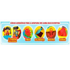 Conteúdo da Embalagem: 01 Casco Com 03 Rodinhas, 01 Convés, 01 Mastro de Proa, 01 Porta Calabouço, 01 Vela, 01 Mirante, 01 Bandeira, 01 Vela Frontal, 01 Prancha, 01 Canhão, Âncora, 02 Escadas de Corda, 01 Cabine de Comando, 03 Cercas, 01 Base Timão, 01 Timão, 02 Bonecos Piratas, 02 Espadas e 01 Cartela de Adesivos