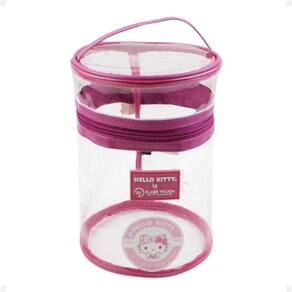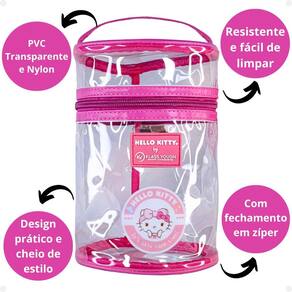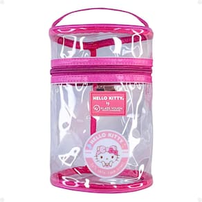 A Necessaire Hello Kitty em PVC Transparente e Nylon é resistente e fácil de limpar, oferece uma maneira prática e estilosa de organizar seus itens de beleza. Com um design Cilíndrica e transparente, esta necessaire é perfeita para manter tudo em ordem com um toque de charme da Hello Kitty. Com 21cm de altura e 14cm de largura, ela é espaçosa o suficiente para acomodar pincéis, diversos materiais e até produtos líquidos sem tombarem.