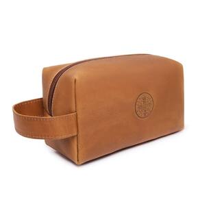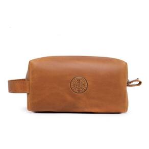 Necessaire Couro Fossil Premium Resistente Forro Impermeavel Ziper Estampa Medalha São Bento - Tamanho: Único / Cor: Marrom Claro / Gênero: Masculino / Departamento BS: Esporte