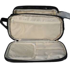 Características do produto: Altura: 15,5cm Largura: 28cm Comprimento: 16cm Peso: 300g Material: PU Design de grande abertura para fácil acesso aos cosméticos. 3 bolsos e 3 compartimentos internos para organização eficiente. Zíper suave e prático para fácil manuseio. Material PU de alta qualidade, resistente e fácil de limpar. Tamanho amplo para cosméticos, pincéis e produtos de higiene. Ideal para viagens e uso diário. Combina praticidade com estilo elegante.