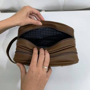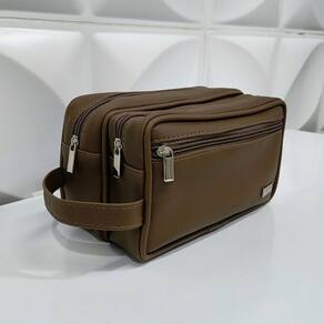 Necessaire Dupla Personalizada Cor Marrom - Coutre Bolsas - Necessaire Dupla Personalizada Dois Compartimentos Cor Marrom - Coutre Bolsas