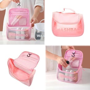 A Necessaire Com Gancho traz praticidade e organização em suas viagens. Excelente para organizar produtos de higiene pessoal como escova de dente, pasta de dente, cremes, pomadas e outros objetos pequenos. Seu gancho a torna prática para usar em qualquer banheiro de casa, trabalho, hotel ou academias. Seu material externo é resistente a água, e possui um compartimento interno para guardar objetos menores.