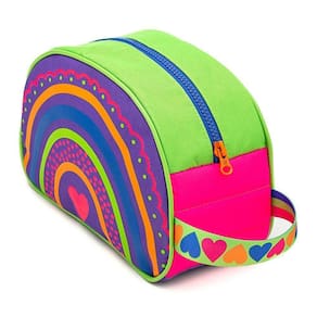 Necessaire Mait ArcoIris Colorido Necessaire super funcional. Perfeita para levar em viagens e passeios. Também pode ser usada na organização de cosméticos e acessórios das crianças, e para guardar remédios. Medida: 24 C x 15 A x 10 L Detalhes do produto: - Uma abertura principal, com zíper trator e um cursor; - Não possui divisórias internas; - Laterais decoradas em metalassê; - Não possui bolsos laterais; - Forro prata plastificado para facilitar a limpeza. Não é impermeável; - Alça de mão; Composição: 15% Poliéster 85% PVC Instruções de limpeza: - Nunca coloque sua Mai.T em máquinas de lavar e/ou em secadoras; - Não utilize produtos químicos, solventes e produtos de limpeza que não estejam descritos nesta instrução; - Limpar somente com pano úmido e sabão neutro, e secar em seguida, com uma flanela seca; - Não molhar zíperes e metais, limpá-los apenas com flanela seca; - Nos produtos que possuírem forro plastificado, limpar a parte interna com esponja macia úmida, e secar com uma flanela seca; - Não deixe de molho ou imerso em água; - Para secar, deixe o produto à sombra, em local ventilado, sem exposição direta ao sol e calor; - Antes de usar ou guardar, confira se o produto está bem sequinho, para evitar mofo e mau cheiro.T tenha contato com outros tecidos que possam soltar tintas e manchá-la. Garantia: - A garantia para defeitos de fabricação de nossos produtos é de 90 dias, a contar da data que foi adquirido. É necessário o comprovante de compra para validação da garantia Marca: Mait