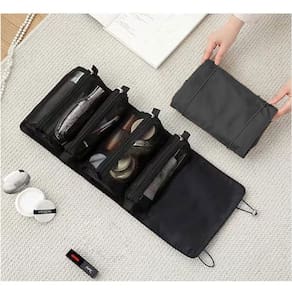 O fechamento com elástico garante que tudo fique seguro e no lugar durante o transporte. Esta necessaire é durável, resistente e fácil de limpar. Seu design elegante e funcional faz dele um item indispensável para qualquer viagem, proporcionando conforto e tranquilidade ao manter sua mala organizada e seus pertences protegidos.