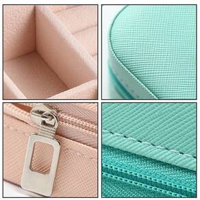 O Mini Porta Joias Portátil Estojo Com Zíper é leve e conveniente, com vários compartimentos, você pode colocar brincos, broches e outras necessidades diárias. O sulco de anel pode conter 6 anéis ou vários pares de brincos.