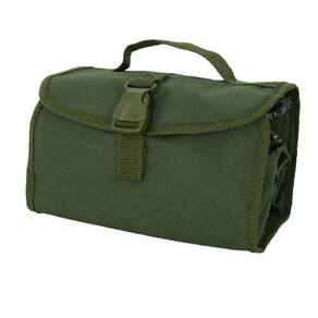 Necessaire Multiúso Verde Confeccionado em Nylon. Fechamento do estojo através de tiras aderentes e fecho tic tac. Alça para transporte. Três compartimentos em plástico com fechamento em zíper. Espelho. Compartimento para toalha de rosto. Altura: 51cm Largura: 23cm Medidas Aproximadas Marca: Não Informado