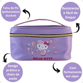 A Necessaire Estampada Hello Kitty by Klass Vough oferece uma maneira encantadora de organizar seus itens de beleza. Com um design prático e cheio de estilo, esta necessaire é perfeita para manter tudo em ordem com um toque de fofura. A estampa da Hello Kitty adiciona um toque de charme e diversão à sua necessaire, tornando-a não apenas funcional, mas também uma peça de destaque em seu conjunto de acessórios. Feita de PU (poliuretano) durável, esta necessaire é resistente e fácil de limpar, garantindo que seus produtos de beleza permaneçam protegidos e organizados por muito tempo. Possui apenas um compartimento.