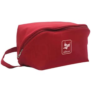 Em nylon impermeável, com super espaço interno, bolso e divisórias