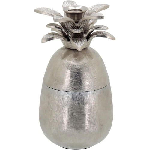 Home&co Neroly Castiçal 22x11x11cm Metal Prata Abacaxi Esse lindo castiçal é produzido em alumínio e tem um formato de abacaxi. A superfície possui uma textura escovada que dá um charme a mais. Esse produto ajudará a enriquecer a sua decoração!