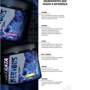 Marca: Nutrata Sabor: Maçã Verde Formato: Pó Ingredientes principais: Cafeína, beta-alanina, taurina, citrulina malato, vitaminas do complexo B.