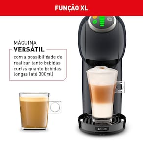 Nescafé Dolce Gusto Genio S Plus da Arno é uma máquina multibebidas, que te possibilita fazer mais de 45 tipos de bebidas diferentes, com controle de temperatura dentre 4 opções - de fria a super quente. Conta com o sistema de 15 Bars de pressão, que garante a melhor qualidade, aroma e cremosidade para todas as bebidas, permitindo resultado semelhante ao obtido pelos baristas profissionais. Acompanha tencologia espresso boost, no qual é possível ter uma experiência ainda mais intensa que pré umedece o café expresso antes do preparo, para café mais intenso e concentrado. Possui função XL, que permite preparar bebidas de até 300 ml. Além disso, acompanha um tanque removível de água de 0,8L, alerta de limpeza e função eco mode, que desliga automaticamente após 1 minuto de inatividade.