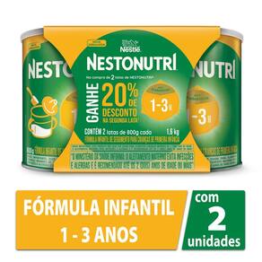Fórmula Infantil de Seguimento para Crianças de Primeira Infância NESTONUTRI Lata 2 Unidades 1,6kg Nestonutri é uma fórmula infantil de seguimento para crianças de primeira 1 a 3 anos), com prebiótico