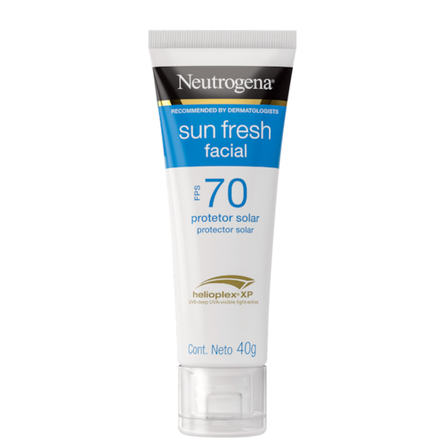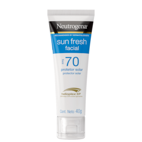 Protetor Solar Neutrogena Sun Fresh Facial FPS 70 foi desenvolvido especialmente para o rosto, com fórmula ultraleve, de rápida absorção, com toque seco e altamente resistente à água. Ajuda a prevenir o envelhecimento precoce e as marcas causadas pelo sol, mantendo a pele protegida, hidratada e sequinha.