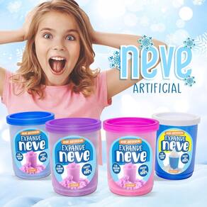 Pó que se transforma em neve quando acrescentado água. Tem cheiro agradável e aumenta até 400%. Use para decorar ou acrescentar á slime. Cor Colorida.