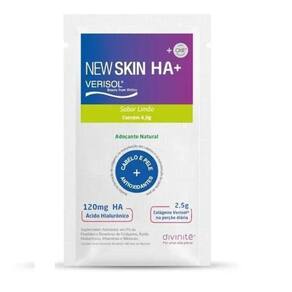 New skin ha+ com verisol com 30 sachês desacelerando o efeito do tempo: peptídeos bioativos de colágeno tipo i e iii com comprovação científica de resultados.O seu cuidado com a pele começa tomando uma sachê do new skin no dia, nutrindo sua pele de dentro para fora e assim ajudando você a se sentir bem em qualquer idade assim ajudando a combater a aparência dos primeiros sinais de envelhecimento. Modo de uso: dissolva o conteúdo de 1 sachê do new skin em 150ml de água e mexa com o auxílio de uma colher até a total homogeneização, beba preferencialmente entre as refeições. Beba imediatamente após o término do preparo.Estudos comprovam que a ingestão diária de 10 g de peptídeos de colágeno associados à vitamina c, é a quantidade necessária para atuar impulsionando o colágeno natural da pele a promover aparência jovial e rejuvenescedora.Peptídeo de colágeno tipo i e iii mais biodisponível do mercado. Ao contrário do colágeno puro os peptídeos de colágeno são altamente absorvidos.Contendo também o verisol que é um combinação de peptídeos bioativos de colágeno aproveitados de uma enzima patenteada e é recomendado para obter uma melhora na qualidade da pele e frear os efeitos de envelhecimento.Indicações:Previne o envelhecimento intrínseco;Estímulo de colágeno, elastina, queratina e glicosaminoglicanos;Mantém a firmeza, elasticidade e hidratação da pele;Mantém a saúde dos cabelos e das unhas.Aplicações:Os peptídeos bioativos de colágeno hidrolisado com peso molecular médio de 2kda auxiliam na manutenção da saúde e da pele.As vitaminas c, e e o selênio são antioxidantes que auxiliam na proteção dos danos causados pelos radicais livres;Mantém a saúde dos cabelos e das unhas.Posologia:Dissolva o conteúdo de 1 sachê em 150ml de água e agite até total homogeneização, beba preferencialmente entre as refeições. Contém: caixa - 30 sachês de 11 gramas cada.Não contém glúten, açúcar, lactose e conservantesNão engorda. Marca: Nutracosmeticos Do Brasil