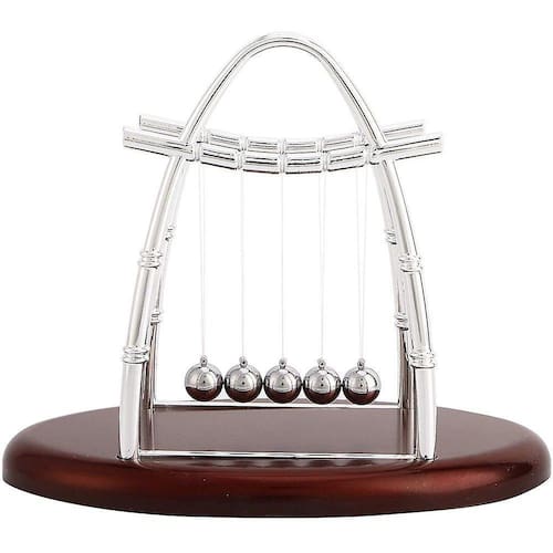 Puxe para trás uma ou mais das bolas de equilíbrio, solte-as e o mesmo número de bolas oscila para o lado oposto.