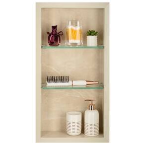 O Nicho Para Banheiro em Porcelanato com Prateleira de Vidro é perfeito para otimizar o espaço do seu banheiro e organizar seus produtos de higiene de forma prática e elegante. Com um design vertical e duas prateleiras de vidro, esse nicho oferece maior aproveitamento do espaço disponível.