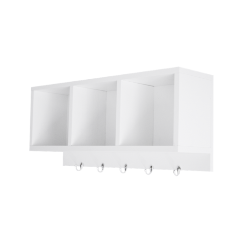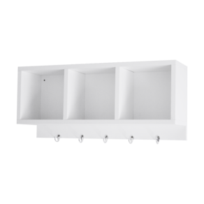 Organize e decore com estilo! Este nicho triplo é ideal para hall de entrada, quartos, banheiros ou onde você quiser mais praticidade. Perfeito para guardar objetos decorativos, e pendurar chaves, bolsas, toalhas e muito mais! Contém: 3 nichos internos (18x18cm) 5 ganchos resistentes Material: MDF 15mm Cor: Branco Medidas totais: 60cm (C) x 26cm (A) x 15cm (P) Acompanha parafusos e buchas para fixação Fácil de instalar e super funcional! Evite exposição ao sol ou umidade. Limpeza com pano úmido.