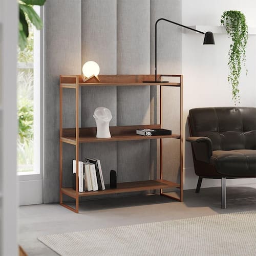 IMAGENS MERAMENTE ILUSTRATIVAS REALIZADO EDIÇÃO, PODENDO HAVER UMA PEQUENA VARIAÇÃO DE COR DEPENDENDO DE CADA TELA OU MONITOR.Nicho 3 Prateleiras 95cm Industrial CÃrdoba Cobre E Carvalho