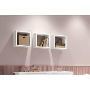 Nicho Aéreo Para Quarto Infantil Juju Branco Fosco - Moveisaqui Funcionalidade define o Kit de Nichos Juju - MóveisAqui perfeitos para organizar as decorações do quartinhos das crianças. Dimensões do Produto Montado:Altura: 30 cmLargura: 30 cmProfundidade: 20 cmObservações:- Produzido em MDF;- Incluso os 3 nichos;- Pintura ultravioleta com acabamento fosco.
