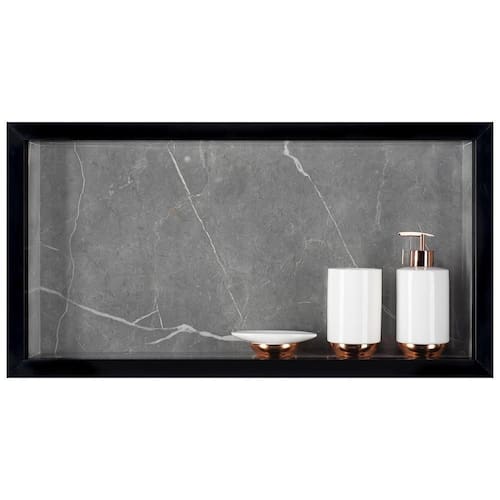 Nicho Em Porcelanato Polido Para Banheiro Porta Shampoo. Feito com porcelanato polido no fundo e laterais, e com uma borda de alumínio com pintura eletrostática que não enferruja. Medidas externas: 61 cm comprimento x 31 cm altura x 11 cm profundidade. Borda de 2,5 cm. Design moderno e elegante. Fácil de instalar, próprio para embutir na parede. Adquira agora e tenha um banheiro mais organizado e sofisticado. Marca: Incompany Home Ean: 7893595837006