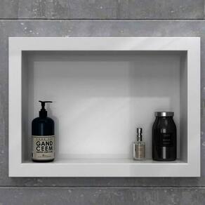 Nicho Bosi Médio Branco - 45x10x33 Nicho de mármore sintético, confeccionado através de processo de injeção de resina com granilha de pedra de mármore e revestimento de gelcoat de poliéster que dá brilho ao produto. É um produto ecologicamente correto e econômico, não absorve água e é mais leve que pedras naturais, proporcionando mais conforto na instalação e limpeza. Marca: Não Informado