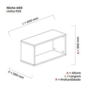 Nicho da nossa linha arena são fabricados com base e tampo de MDP BP 15mm com bordas em pvc 0,045mm, possui divisores com MDP BP 25mm com bordas de 2mm. Diversas opções de cores possibilitando você escolher a que mas combina com seus gosto. Ambiente Principal: Escritório Complexidade da Montagem: Média: pode ser montado por mais de uma pessoa e/ou necessite de maior conhecimento para montagem Cor: Nogueira Casa Blanca Cor do Produto: Nogueira Casa Blanca Escala de Brilho: Semi-Fosco Itens Inclusos: 1 Nicho, kit ferragens e manual de montagem Linha ou Coleção: P25 Manual de Montagem e Instalação: https://cdn2.madeiramadeira.com.br/atributo/pandin/1364438-nicho-600.pdf Material da Prateleira: MDP Material do Fundo: MDP Material Principal: MDP Necessita Montagem: Sim Origem do Produto: Nacional Peso: 5,6 kg Peso Máximo por Prateleira: 15 kg Possui Espelho: Não Possui Possui Fundo: Sim Possui Portas: Não Possui Prateleiras: 01 Possui Toalheiro: Não Recomendações de Uso, Manutenção e Limpeza: Utilizar um pano levemente umedecido com água, para finalizar utilizar um pano seco. Sistema de Montagem: Parafusos Suporta Até (kg): 15 kg Tipo de Nicho: Prateleira