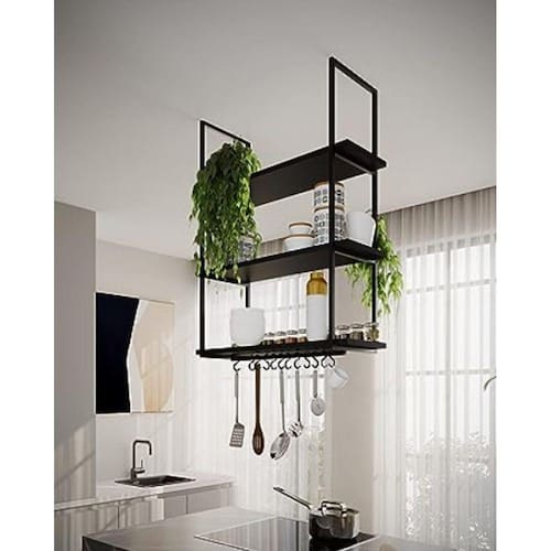 E não é só isso! O conjunto acompanha um exclusivo suporte de porta utensílios e talheres com 12 ganchos, para que você tenha sempre à mão suas xícaras, facas, panelas, talheres e outros objetos favoritos. E como se não bastasse, a estrutura é fabricada em aço resistente e durável, com uma camada de proteção contra ferrugem e acabamento de pintura eletrostática epóxi.