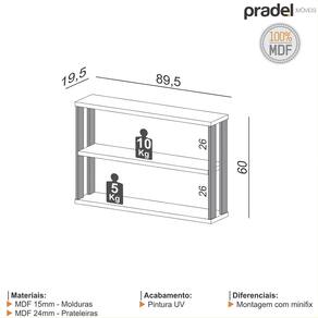 *Informações basicas: Material: MDF 15mm molduras e 24 mm prateleiras Acabamento: Pintura UV Peso suportado: 5 kg e 10 kg Distancia de uma prateleira a outra 26mm Diferenciais: Montagem com minifix Use um pano limpo e ligeiramente umedecido em água Logo após, seque a superfície com um pano seco e macio.