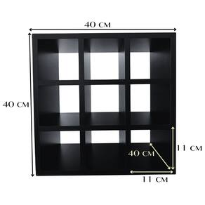 Nicho Organizador Multiuso com 9 Compartimentos: Ideal para uso em Assistência Técnica para organizar Celulares e Eletrônicos; Porta Toalhas e Salões e Barbearias; Porta Velas; Pequenas Decorações; Material: MDF 15mm - com revestimento Melamínico Cor: PRETO MEDIDAS Compartimentos: 11 Largura x 11 Altura x 20cm Profundidade MEDIDAS EXTERNAS: 40 Largura x 40 Altura x 20cm Profundidade O produto segue desmontado; Fácil Montagem (Acompanha Manual e Kit Montagem). Acompanha parafusos, buchas e suporte para fixação; Acabamento de Alta qualidade! Resistente a riscos; prático, com alto brilho, de fácil limpeza, e de simples instalação.