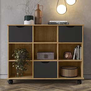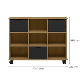 Nicho Organizador 1478 com 3 Gavetas - Qmovi O Nicho Organizador foi pensado para facilitar o processo de organização. É um produto muito prático que pode ser utilizado em diversos ambientes como quarto infantil, sala de estar e escritório. Ele possui 9 compartimentos internos que contribuem para organização do local e rodízios que facilitam a locomoção. Acompanha Kit com 3 Gavetas, um módulo opcional que foi feito para incrementar o Nicho Organizador, melhorando sua divisão interna e dando mais beleza e praticidade ao seu ambiente. As gavetas contam com fitas de feltro na parte inferior para não danificar o móvel.
