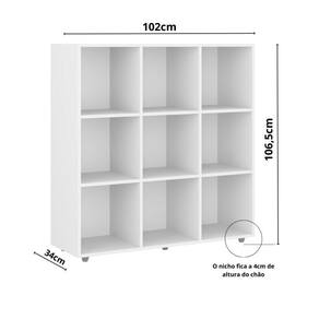 Nicho Organizador 9 Prateleiras Movelbras Branco. O nicho possui 9 compartimentos, para acomodar livros, brinquedos e uma diversidade de objetos da criança. Otimiza espaço e mantém os ambientes organizados. Acompanha o kit de segurança com sistema antitombamento, proporcionando maior segurança e evitando acidentes. Obs: imagens meramente ilustrativas, decoração não acompanha o móvel. Parafusos ficam a mostra, por segurança não foram utilizados tapa-furos. Não realizamos a montagem. Ean: 7908506294394