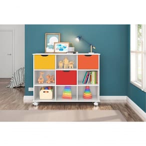 Nicho Organizador com Rodinhas Portland Branco com 3 Gavetas Coloridas