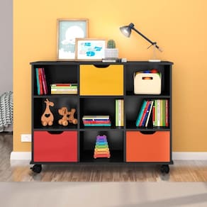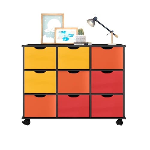 Organização pode ser uma tarefa difícil quando se tem muitos objetos, não é mesmo? Pensando nisso, a Mpozenato apresenta o Nicho Organizador com Rodízios Toys 9 Gavetas Q01 Preto/Colorido, vem conhecer os detalhes! O Nicho Organizador com Rodízios vem para facilitar esse processo! Ele é um produto multifuncional que pode ser utilizado em diversos ambientes, como quarto infantil, sala de estar ou sala de brinquedos, o seu design clean permite que seja facilmente combinado com outros móveis para que seu ambiente fique ainda mais bonito! Ele é produzido em MDP 15mm, acabamento em Pintura UV, que dá destaque à cor e ainda possui 4 rodízios que facilitam movê-lo de lugar, quando necessário. Além disso, acompanha Kit de 9 gavetas que encaixam perfeitamente nos nichos, apresentam puxadores em cava e contam com fitas de feltro na parte inferior para não danificar o móvel. Não perca tempo, garanta já o seu! Dimensões do ProdutoLargura: 108 cm.Altura: 83 cm.Profundidade: 33,5 cm.Peso: 47 Kg.Características do ProdutoMaterial da Estrutura: MDP 15 mm.Material do Fundo: MDF 3 mm.Peso suportado: 22 Kg distribuídos.Acabamento: Pintura UV.Escala de Brilho: Fosco/Gavetas: Fosco.Possui Gavetas: Sim.Possui Rodízios: Sim.Diferenciais:- Produto multifuncional.- Gavetas com fitas de feltro para não riscar o produto.- Frente das gavetas com acabamento de bordas em pintura PU.Sistema de Montagem: Minifix / Cavilhas / Parafusos.Manual de Montagem: Sim.Complexidade da Montagem: Baixa.Volumes: 5 Volumes.Conteúdo da embalagem: 1 Nicho, 9 Gavetas.Garantia do Fabricante: 90 dias contra defeito de fabricação.Montagem: Recomendamos que seja feita por um profissional.Recomendação de Limpeza: Pano levemente úmido e detergente neutro.Observações importantes- Produto para uso residencial em ambiente interno, não devendo ficar exposto diretamente ao sol, calor e umidades excessivas. - Pode haver alguma diferença de tonalidade entre a imagem e o produto real, por conta do tratamento de imagens e a calibração de cores do seu monitor. - As imagens são meramente ilustrativas, não acompanham objetos de decoração e eletrônicos. - Confira o estado da embalagem, não devendo assinar o comprovante em caso de danos. - Não asseguramos, no ato da entrega, por subir escadas/elevadores, pelo transporte por guincho em apartamentos ou montagem, desmontagem e instalações. Eventuais despesas são por conta do comprador. - Confira as dimensões do produto e certifique-se de que passará normalmente por supostos elevadores, portas, escadas e/ou corredores de sua residência.