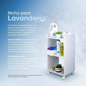 Nicho Organizador Móvel Multiuso Para Lavanderia Com Rodinhas 40cm O Nicho Organizador Móvel Multiuso para Lavanderia com Rodinhas 40cm é a solução perfeita para uma organização eficiente da sua lavanderia! Agora você pode manter tudo ao seu alcance, facilitando as tarefas do dia a dia e mantendo sua lavanderia arrumada.